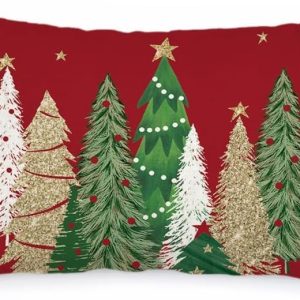 Christmas Pillow Cover 12X20 Colorful Christmas Tree Stars Decoration Holiday Farmhouse Winter Pillow Case Decor for Home Sofa Couch (Red) AA231-12 |