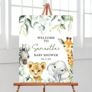 Personalized A Little Wild One Baby Shower Welcome Sign, Safari Jungle Baby Shower Poster, Greenery Safari Animals Baby Shower Decoration |