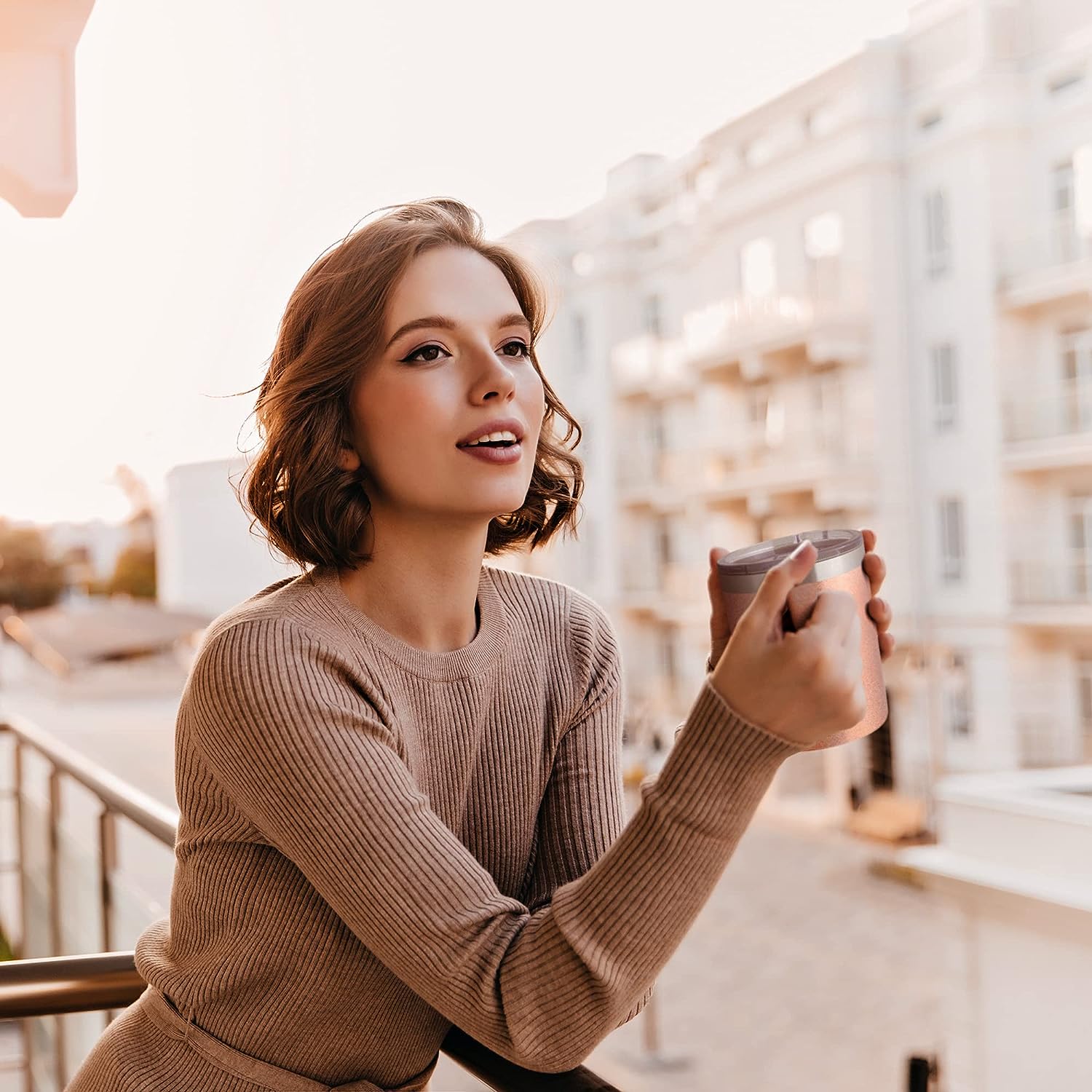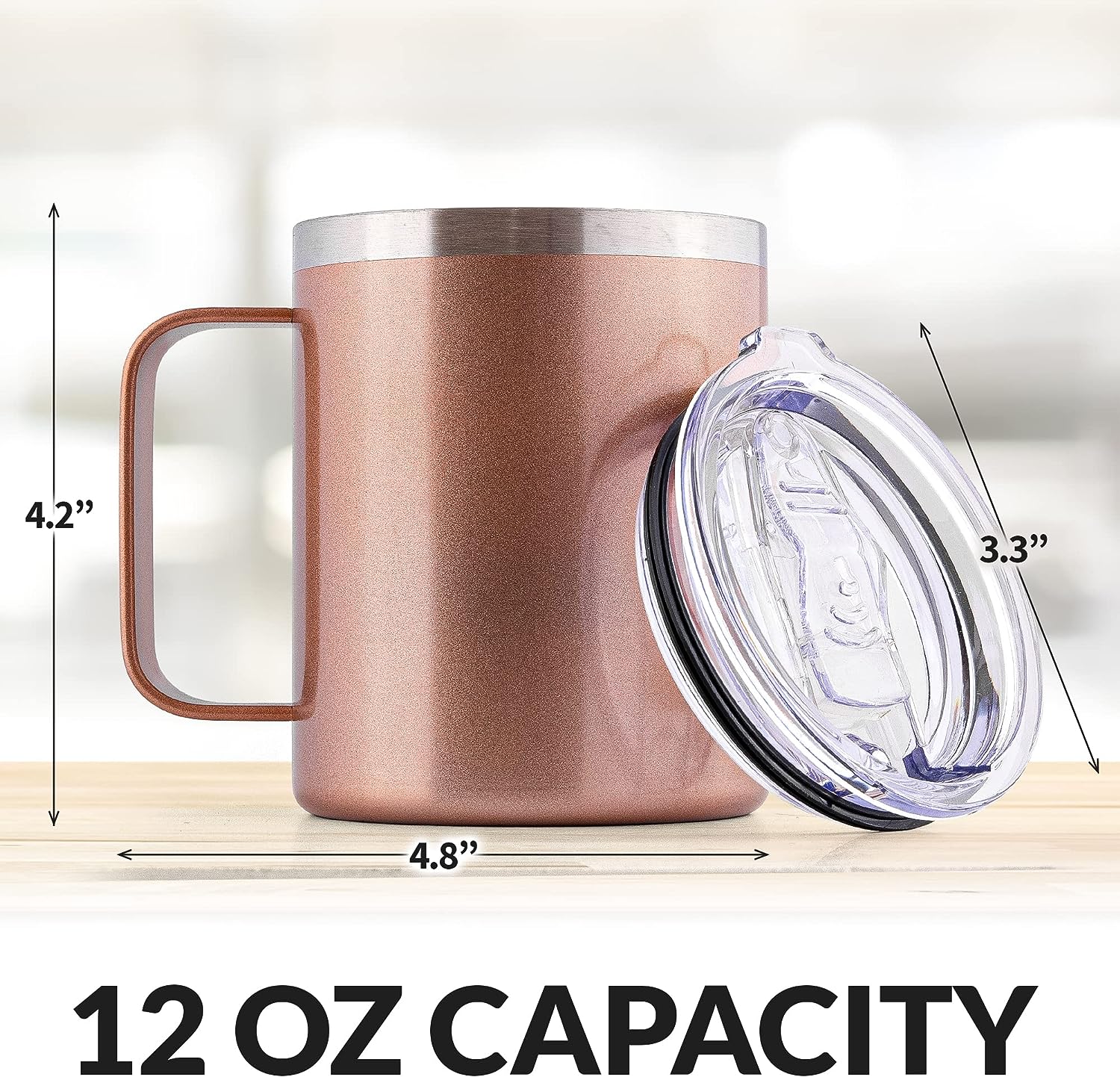 12 oz Insulated Coffee Mug with Lid - Stainless Steel Camping Mug Tumbler with Handle - Double Wall Vacuum Duracoated Insulated Mug For Travel, Camping, Office, Outdoor (Rose Gold)