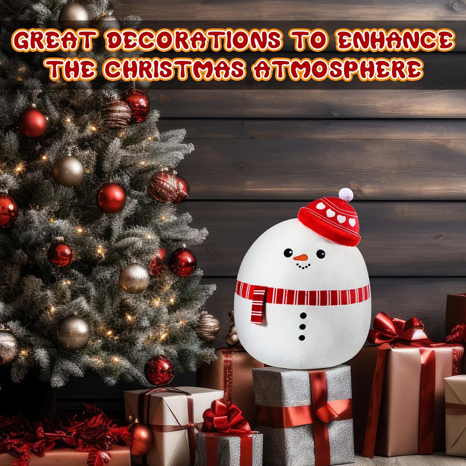 14 Inch Christmas Snowman Plush Throw Pillow Soft Cuddly Stuffed Pillow Large Christmas Hugging Cushion for Home Bedroom Office Sofa Decor Christmas Birthday Holiday Party Favor Gift