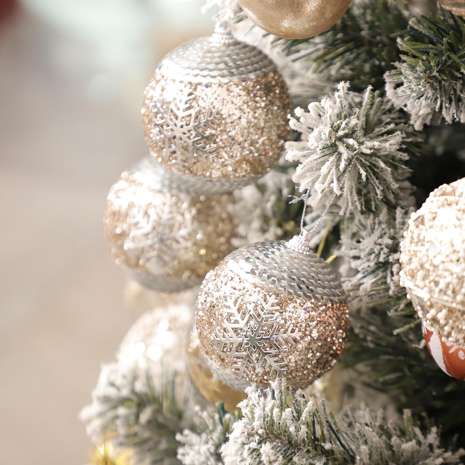 3.94" Christmas Ball Ornaments 6pcs Glitter Sequin Foam Ball Shatterproof Christmas Decorations Tree Balls Xmas Hanging Balls for Xmas Trees Wedding Party Holiday Decorations(Champagne Gold) quantity