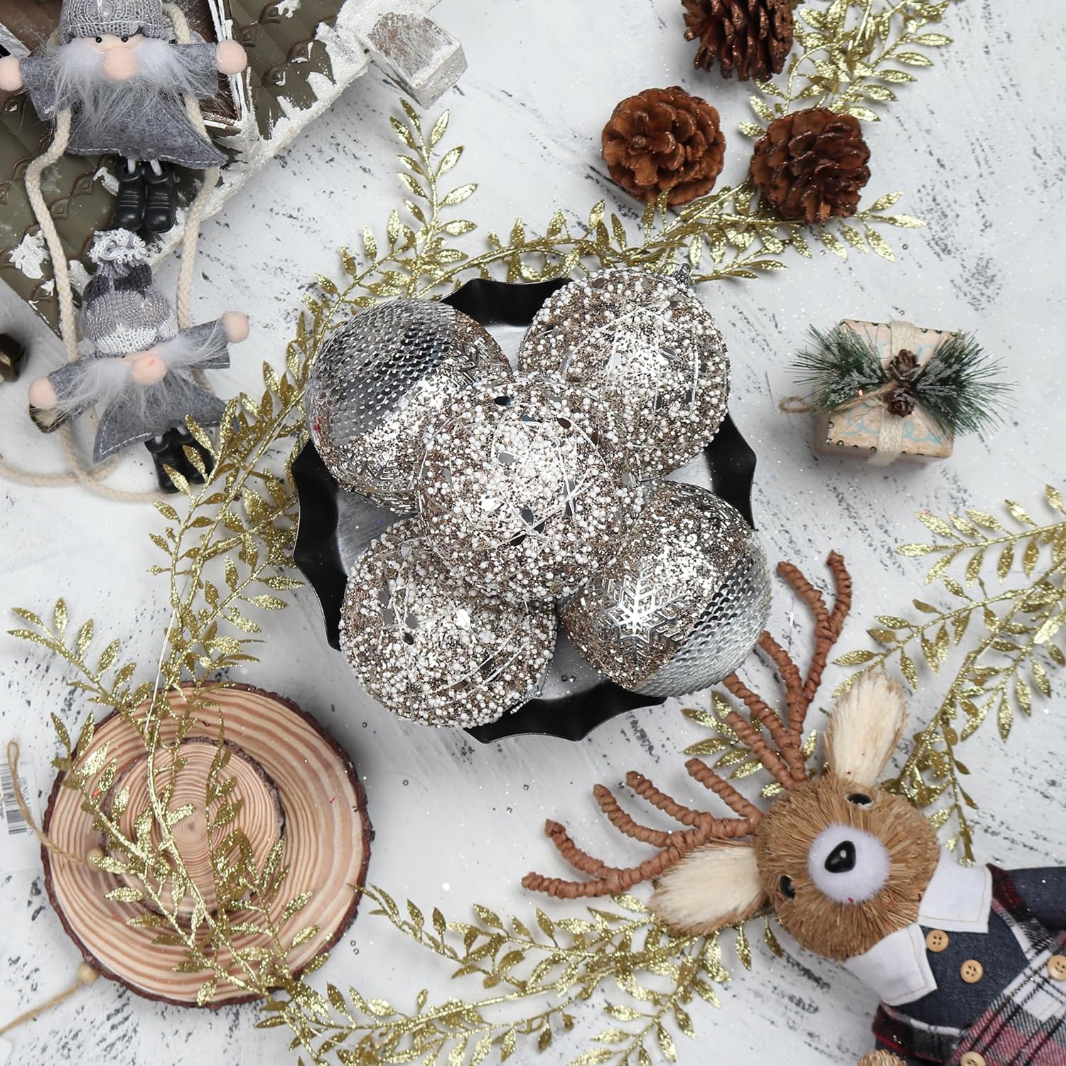 3.94" Christmas Ball Ornaments 6pcs Glitter Sequin Foam Ball Shatterproof Christmas Decorations Tree Balls Xmas Hanging Balls for Xmas Trees Wedding Party Holiday Decorations(Champagne Gold)