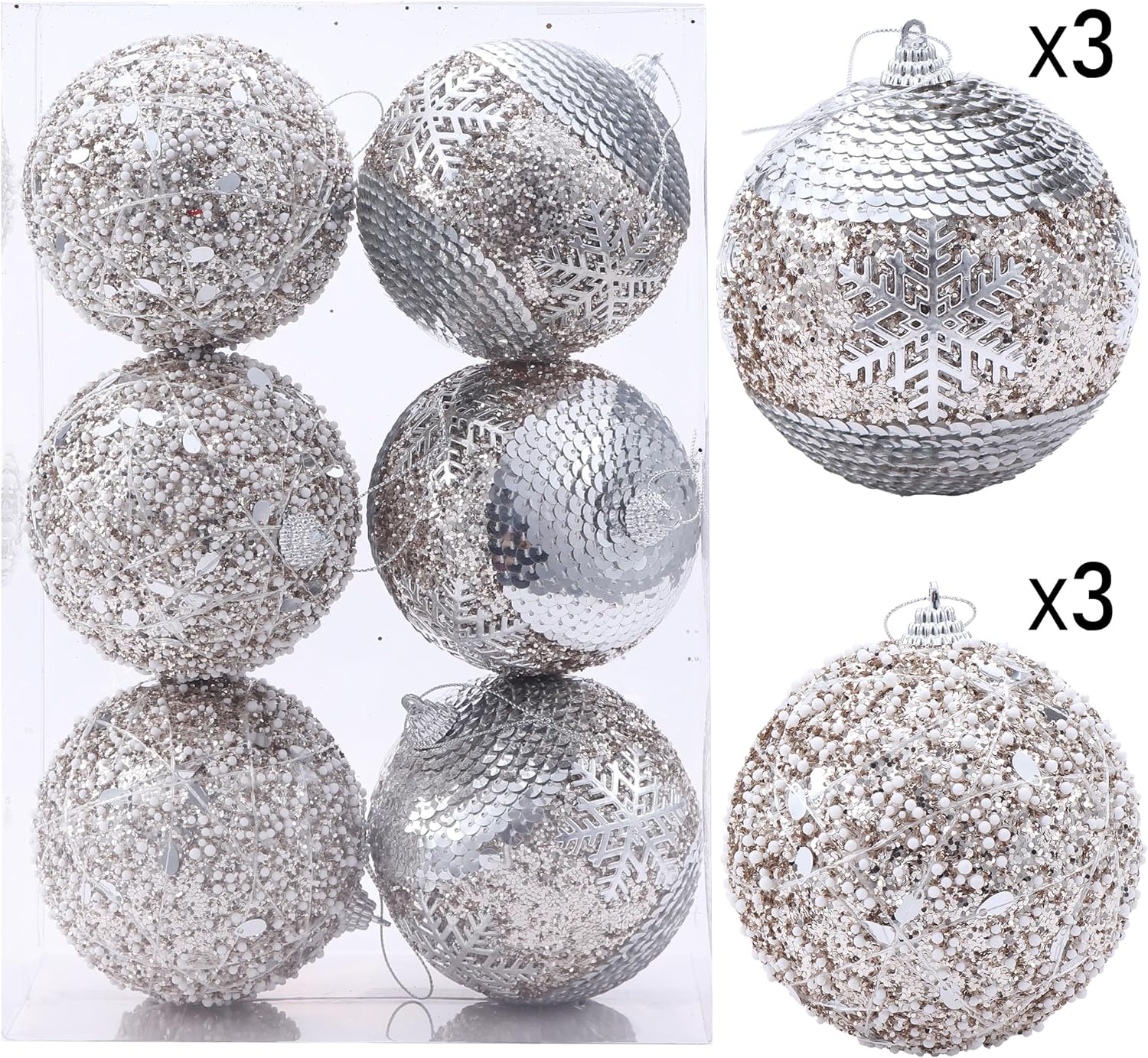 3.94″ Christmas Ball Ornaments 6pcs Glitter Sequin Foam Ball Shatterproof Christmas Decorations Tree Balls Xmas Hanging Balls for Xmas Trees Wedding Party Holiday Decorations(Champagne Gold)
