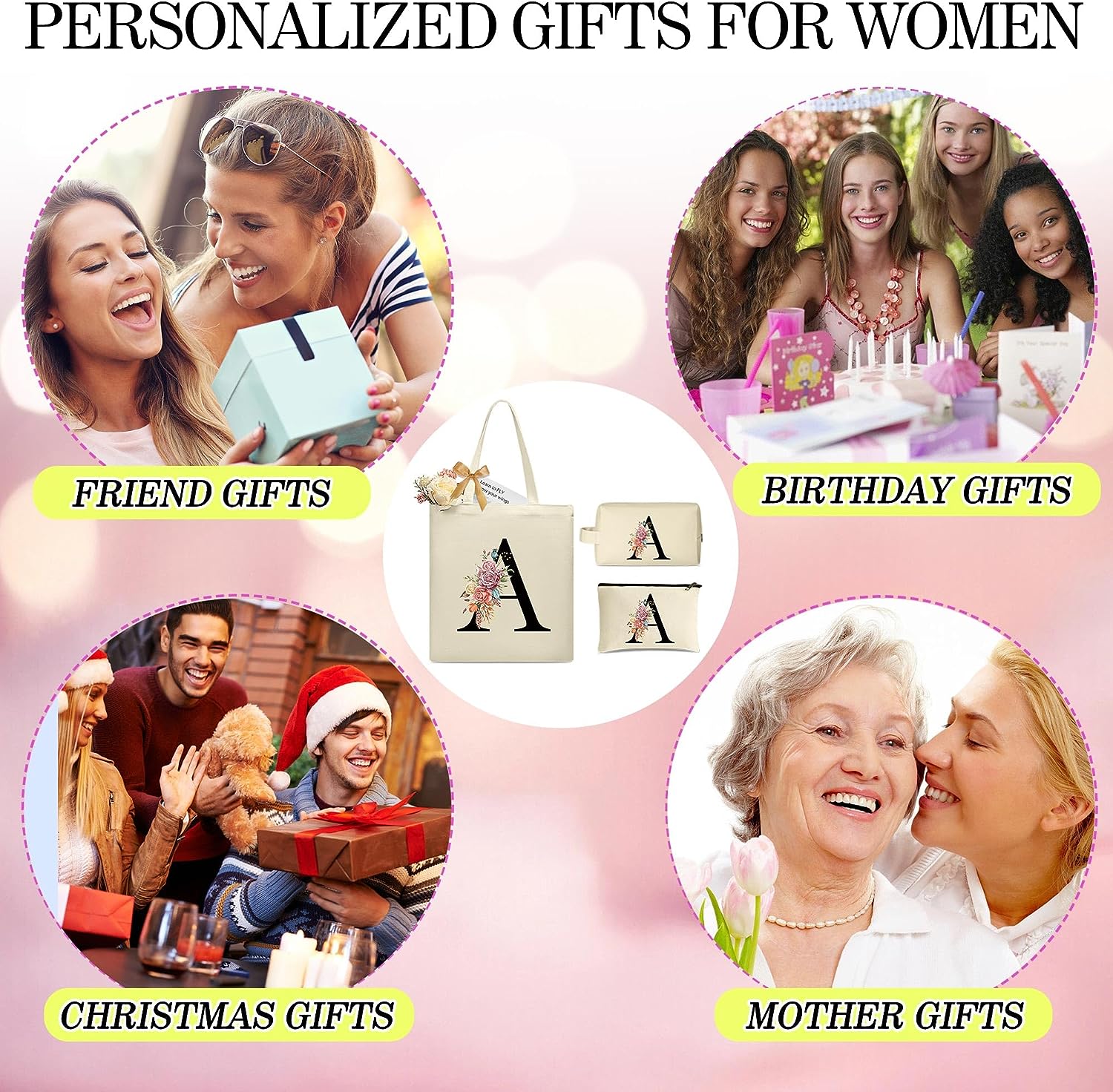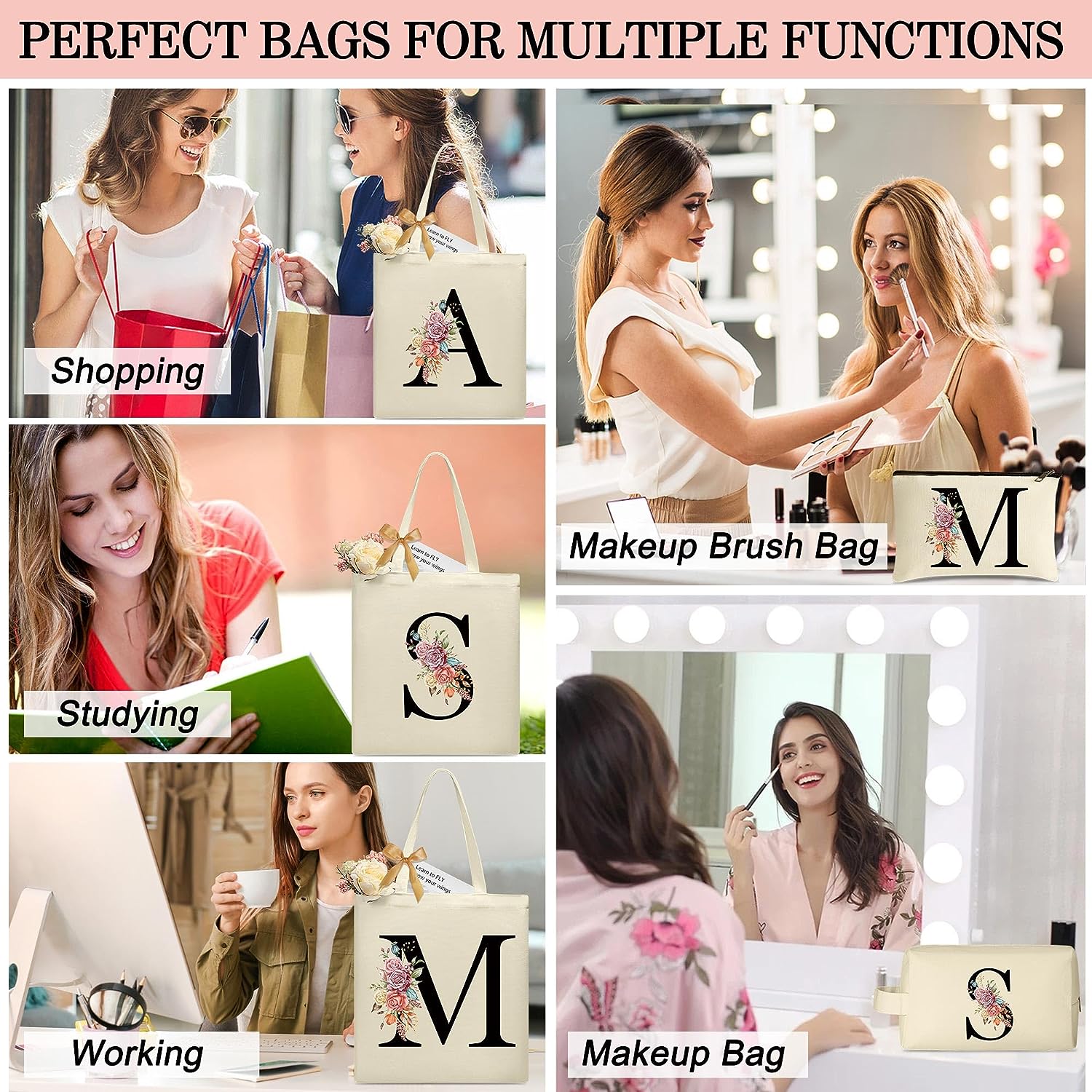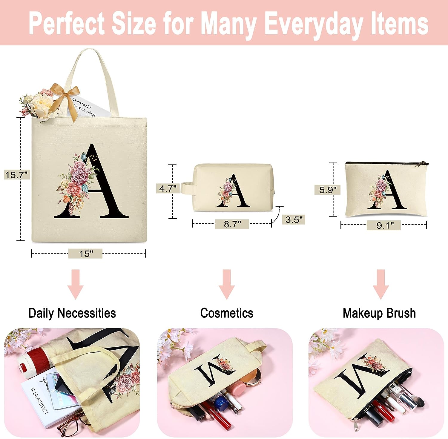 Canvas Tote Bag with 2 Makeup Bags Personalized Gifts Unique Teacher Gifts Friend Birthday Gifts for Women