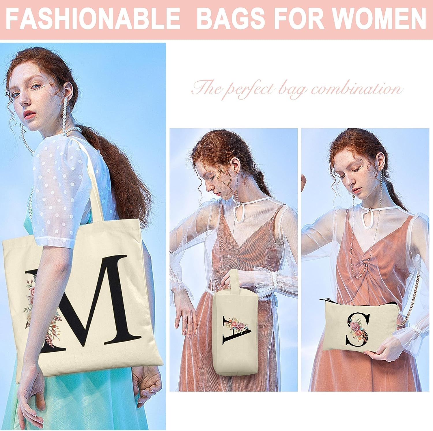/ Canvas Tote Bag with 2 Makeup Bags Personalized Gifts Unique Teacher Gifts Friend Birthday Gifts for Women