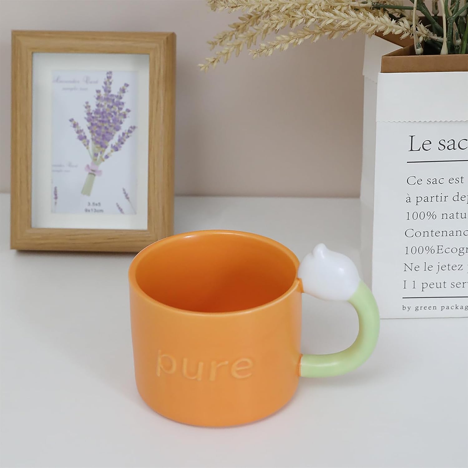 / Ceramic Coffee Mug, 3D Flower Mug, Cute Coffee Tea Cup, Funny Mug, Dishwasher & Microwave Safe, 12oz Orange