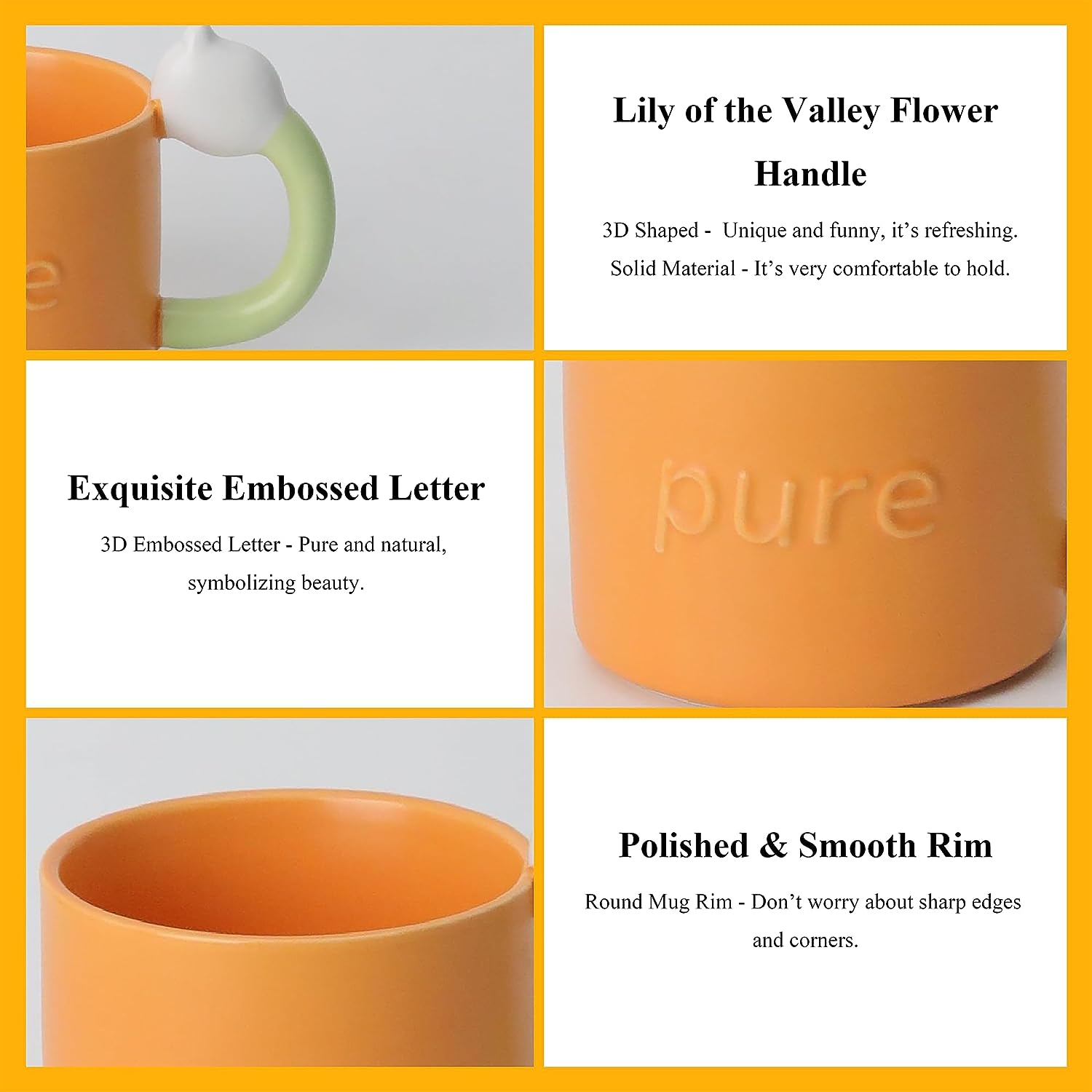 Ceramic Coffee Mug, 3D Flower Mug, Cute Coffee Tea Cup, Funny Mug, Dishwasher & Microwave Safe, 12oz Orange quantity