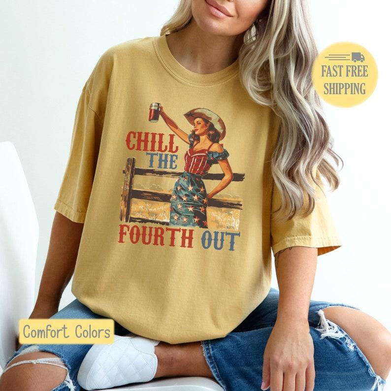 Chill the fourth out Shirt, America Girl Shirt, 4thJuly T Shirt, Crew Neck quantity