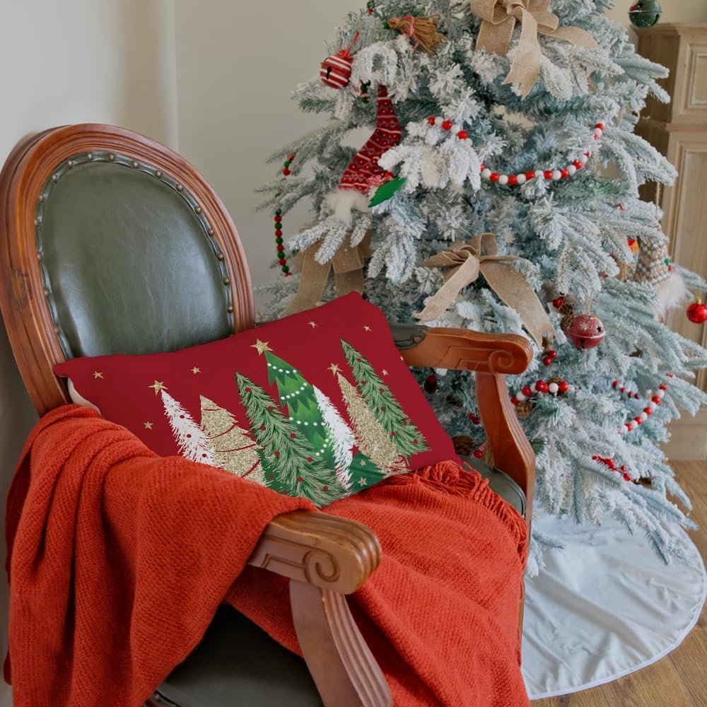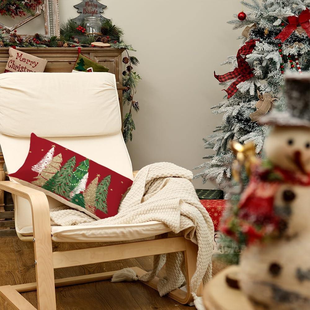 / Christmas Pillow Cover 12X20 Colorful Christmas Tree Stars Decoration Holiday Farmhouse Winter Pillow Case Decor for Home Sofa Couch (Red) AA231-12