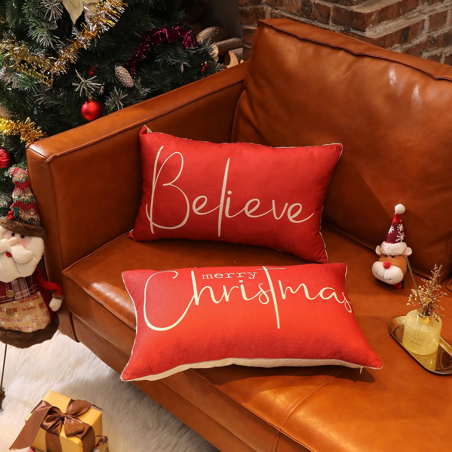 Christmas Throw Pillow Covers 12x20 Inch Set of 2 Merry Christmas Farmhouse Decorations Believe Holiday Decor Throw Cushion Case for Home Couch