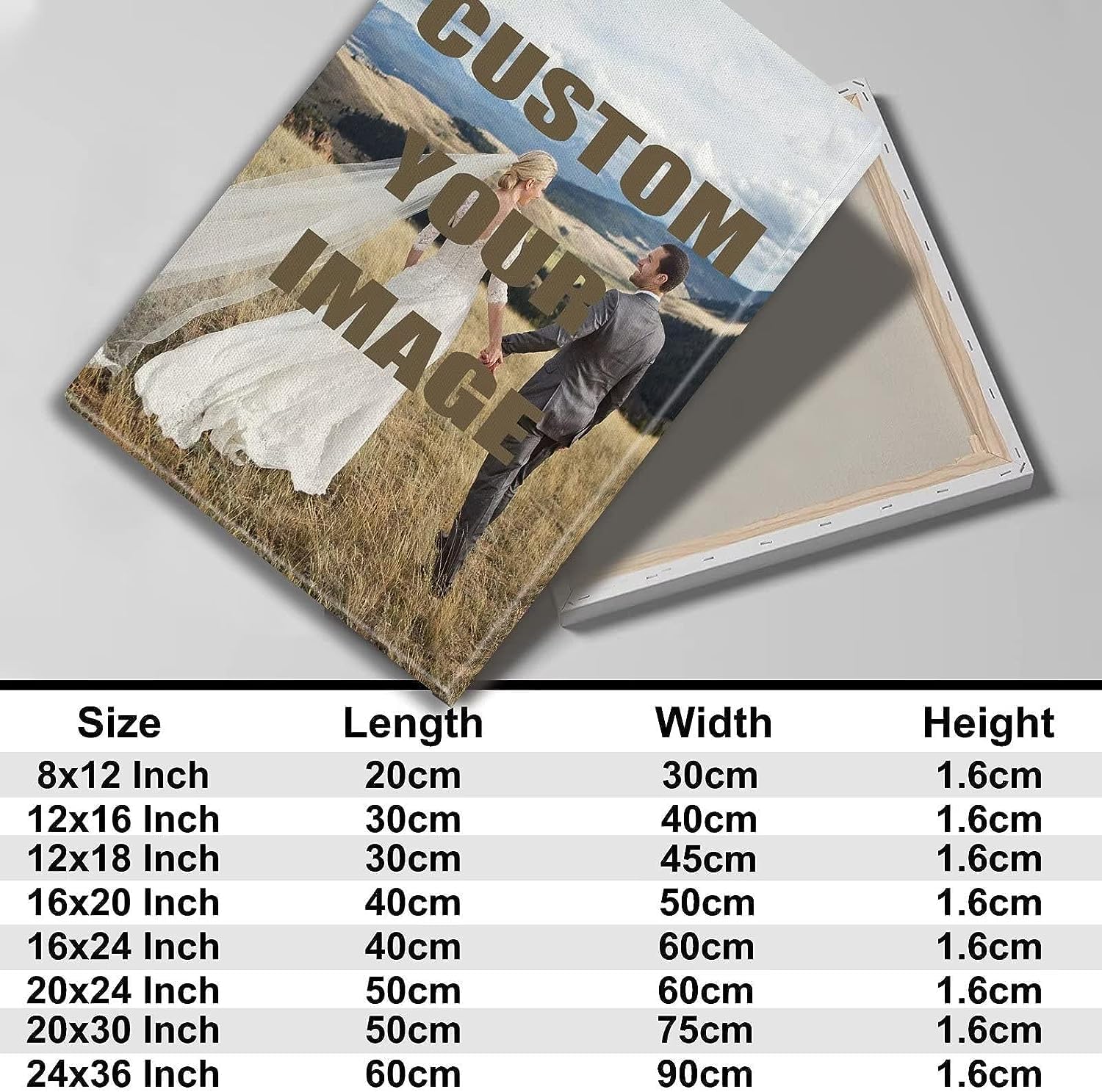 Make sure the image you upload covers the entire canvas area; white borders left on the edges will show up on canvas. Image resolution must be at least 75 DPI. Digital camera resolution must be 4 megapixels minimum. For best picture quality, upload your picture in “JPEG” file format. The final print corresponds exactly to its respective preview in Amazon’s customization tool viewer. Many different sizes to choose from. Custom canvas print made from pictures of your own special moments. Customized Canvas Wall Art As Decoration for Living Room, Bedroom, Bathroom, Dining Room, Kitchen Etc Or a Perfect Gift for the Person You Cherish.Fill the Walls of Your Home With Stunning Gallery Wrapped Canvas Print.