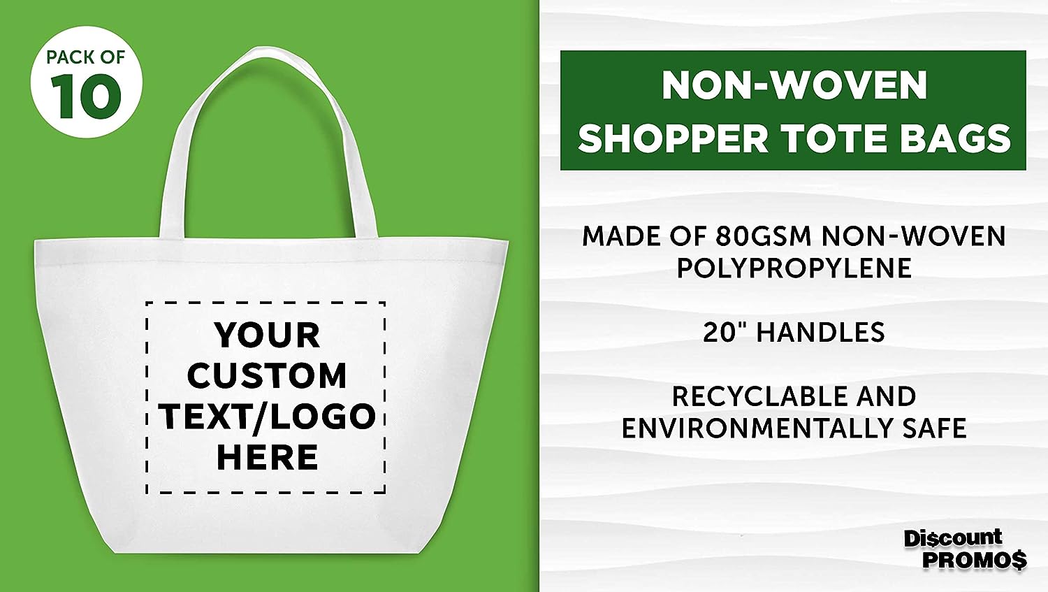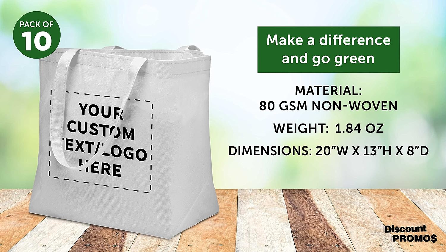 / Custom Southern Style Grocery Tote Bags Set of 10, Personalized Bulk Pack – Reusable, Great for Grocery, Shopping, Travel, Carry on Bag – White