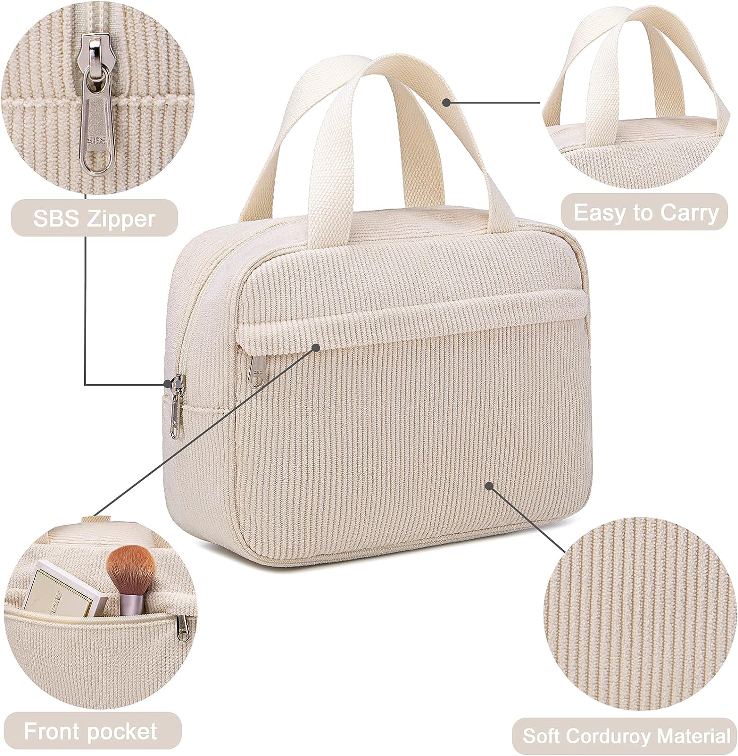 / Makeup Bag for Women Girls Cute Corduroy Travel Cosmetic Tote Large Make Up Organizer Toiletry Bags Zipper Pouch Purse