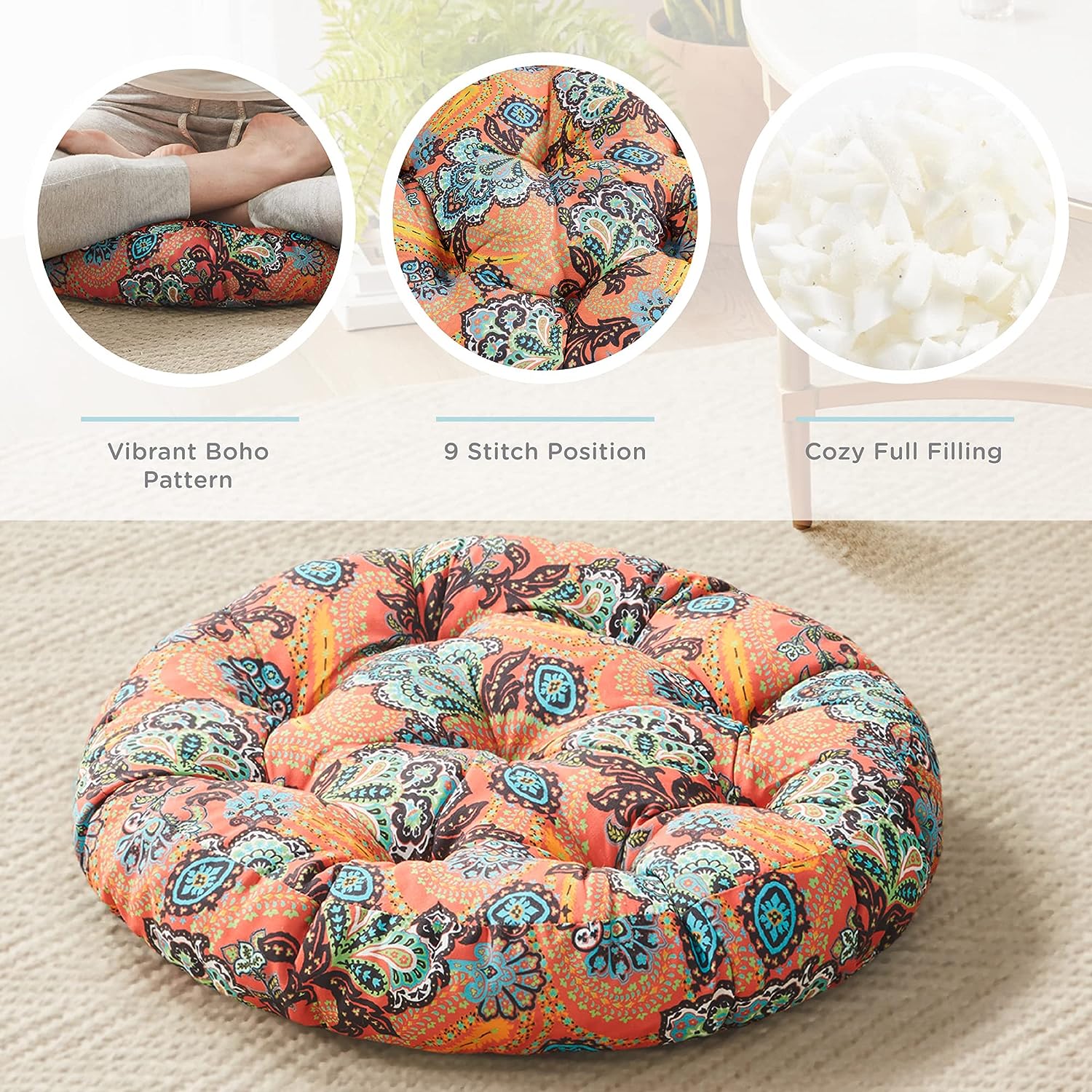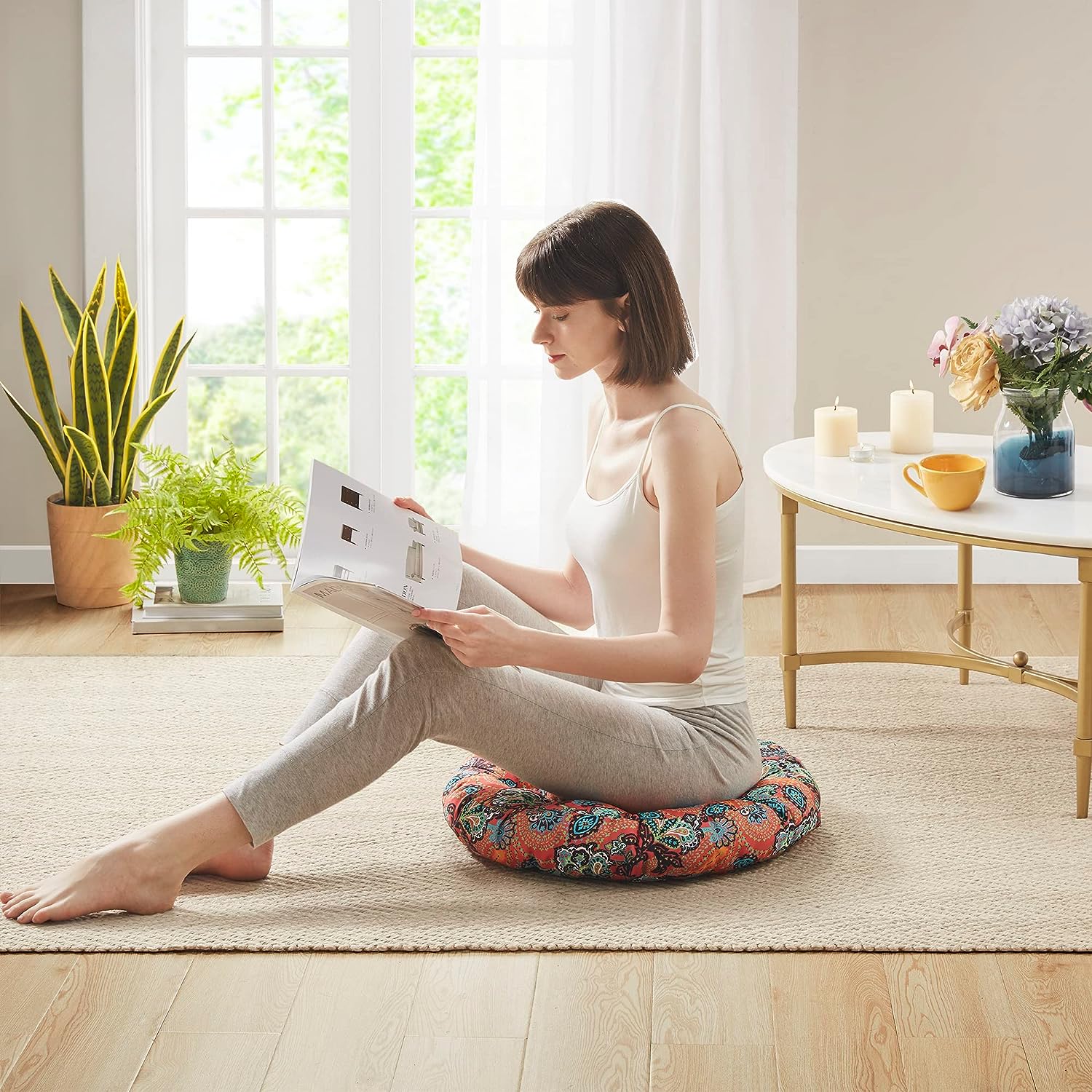 / Meditation Floor Pillow, Boho Pillows Seating for Adults & Kids, Large Round Cushion for Yoga Living Room Tatami Sitting, Memory Foam Added, 22×22 Inch, Poppy Red