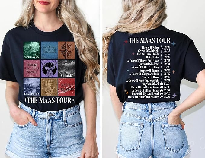 The Maas Tour Shirt - Sarah J Maas Tour Shirt, SJM 2 Sided T-Shirt for Fans, Medium, Light Pink