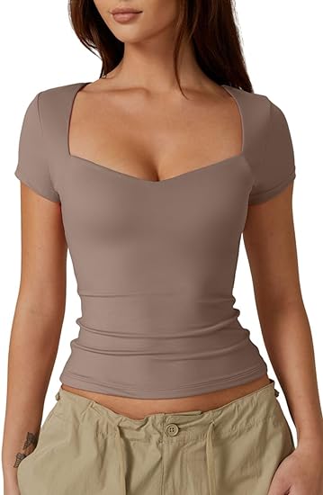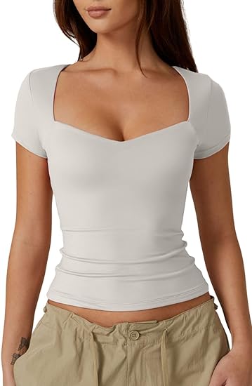 Simple and Minimalist Design: The square neck shape of these T-shirts, inspired by the sweetheart neck, combines the benefits of showcasing collarbones and breast cleavage. Elegant yet seductive, perfect for summertime wear.