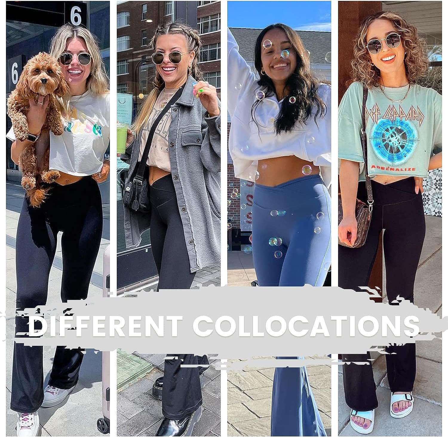 / Women’s Black Flare Yoga Pants, Crossover High Waisted Casual Bootcut Leggings