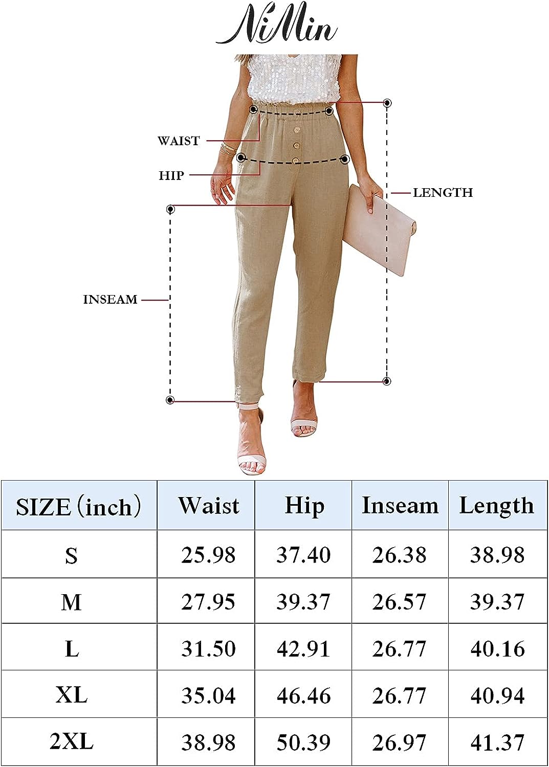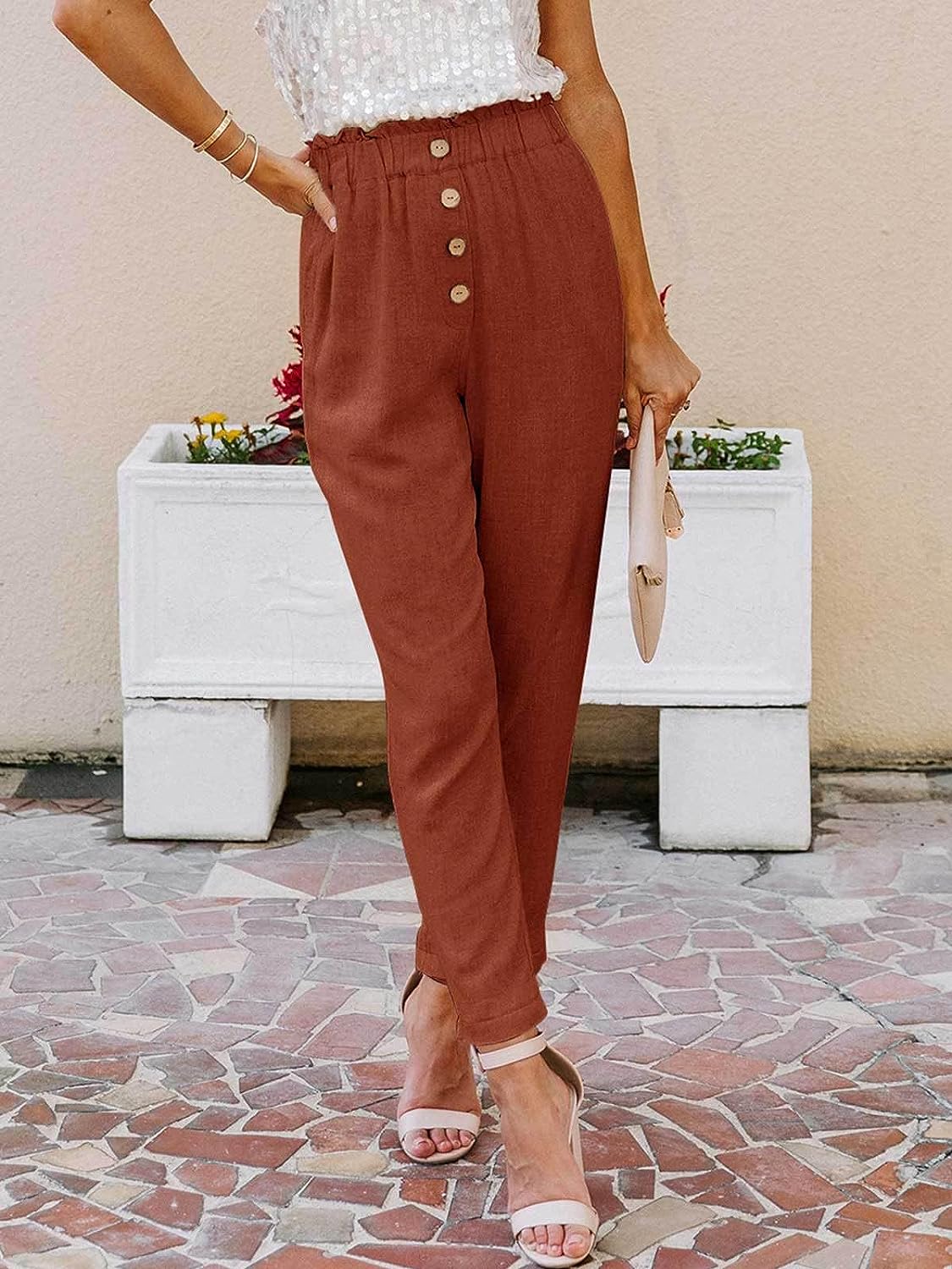 Womens Casual Loose Pants Comfy Cropped Work Pants with Pockets Elastic High Waist Paper Bag Pants quantity